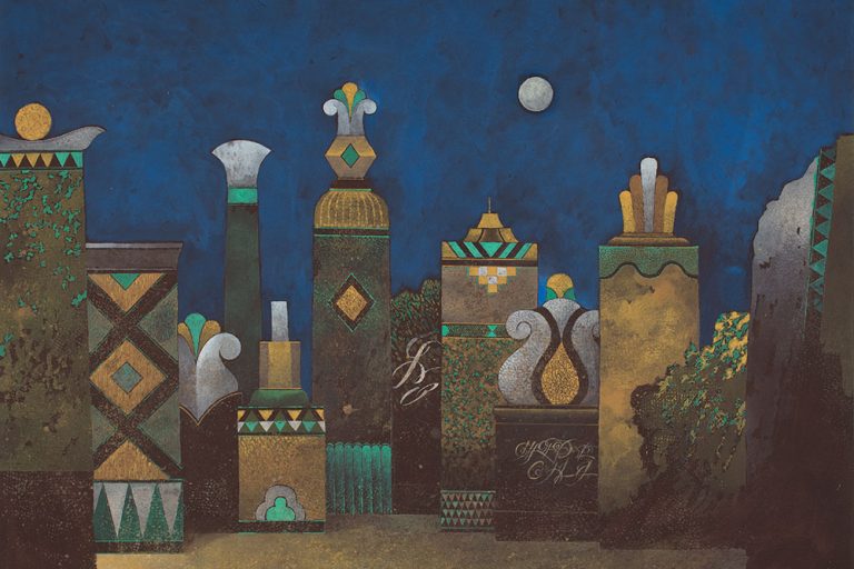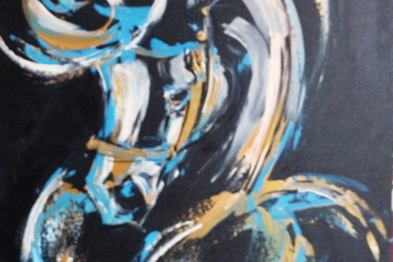 Son graphisme tend vers l’abstraction …. du noir, du bleu,…