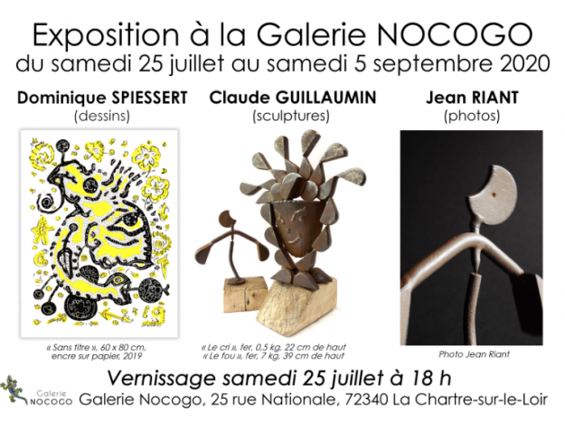 Juil192020 Dominique SPIESSERT dessins, Claude GUILLEMIN sculpteur, Jean RIANT photographe VERNISSAGE samedi 25 juillet à 18H