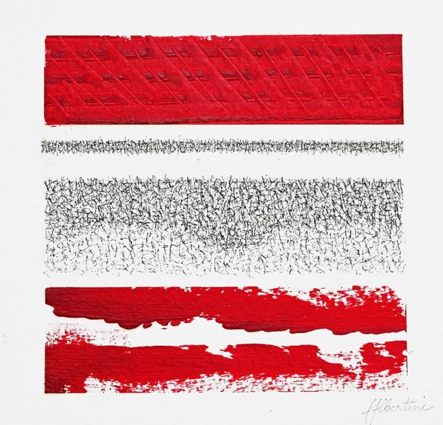 Son graphisme tend vers l’abstraction …. du noir, du bleu, du rouge…. Des encres et des la libération du geste du dessin….