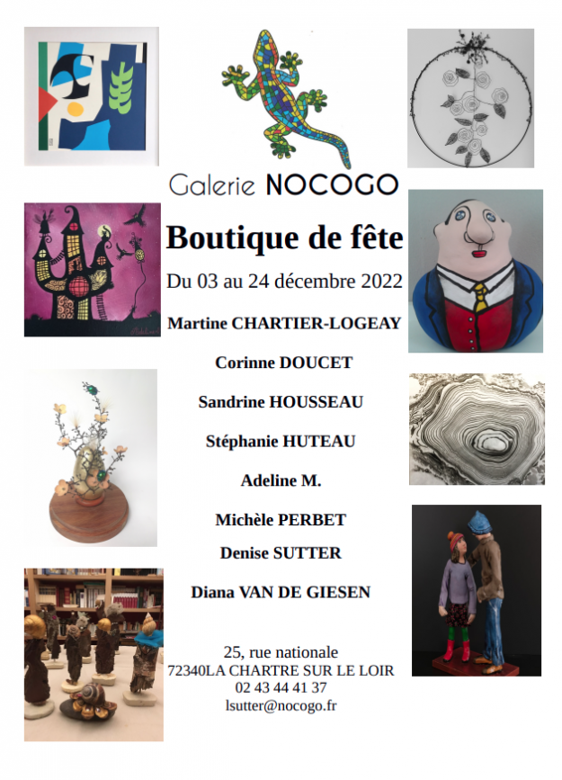 HUIT ARTISTES EXOSENT pour la Boutique de Noêl Corinne DOUCET – Stéphanie HUTEAU -Martine CHARTIER – Sandrine HOUSSEAU – Michèle PERBET – Diana VAN DE GIESEN – Ibraïm TRAORE – ADELINE M